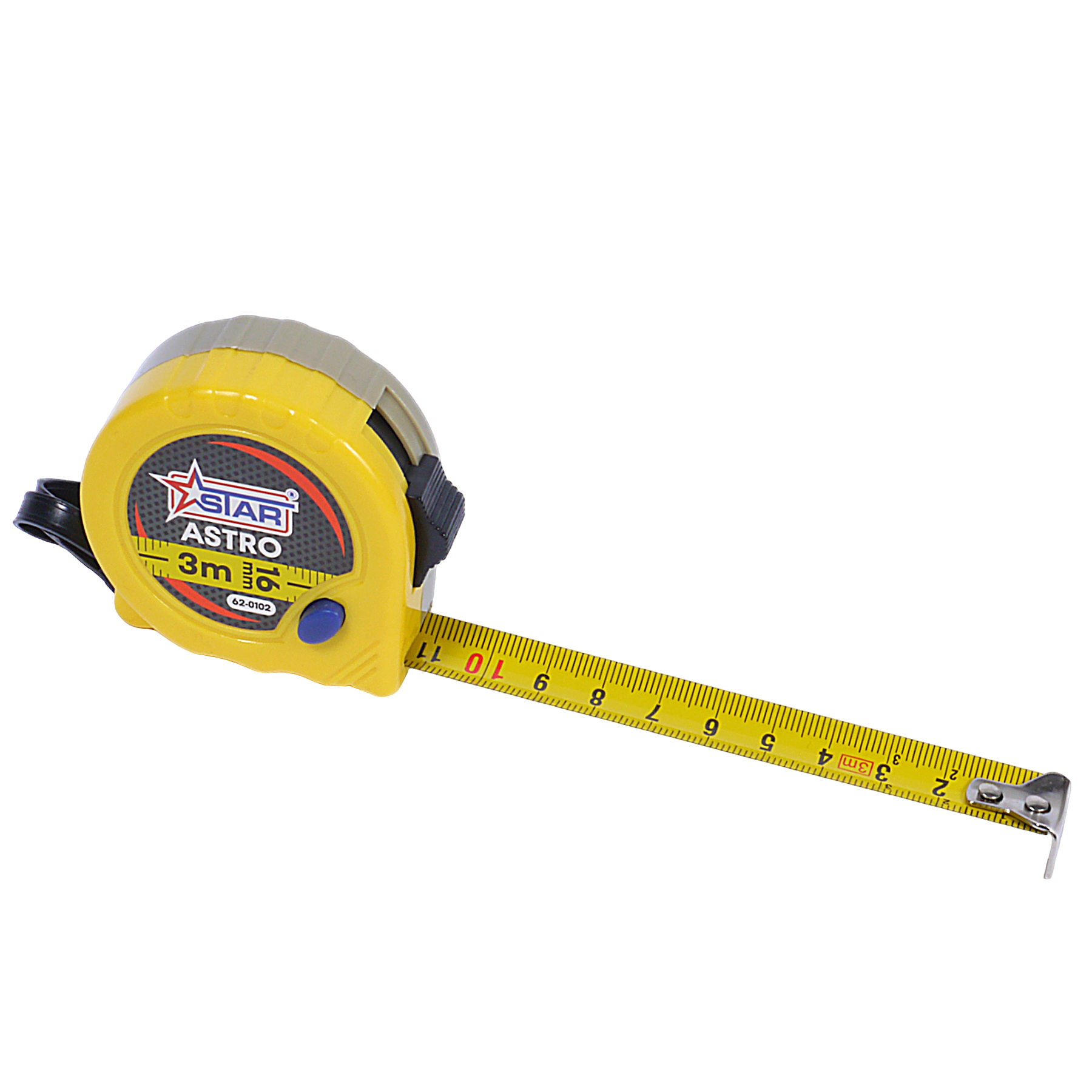 Wyraźna podziałka w cm i mm umożliwia szybkie, dokładne odczyty. Ergonomiczna obudowa dobrze leży w dłoni, zapewniając pewny chwyt i komfort nawet podczas dłuższej pracy. Wyraziste kolory (miara dostępna w kilku wariantach kolorystycznych) ułatwiają szybkie odnalezienie miary wśród innych narzędzi. Solidny metalowy zaczep pozwala na stabilne zaczepienie taśmy o krawędzie i elementy konstrukcyjne, a wbudowana blokada daje pełną kontrolę nad wysuniętą długością taśmy. Dzięki temu taśma miernicza Astro Star sprawdza się jako praktyczne, niezawodne narzędzie pomiarowe, które realnie wspiera efektywną i precyzyjną pracę każdego użytkownika.